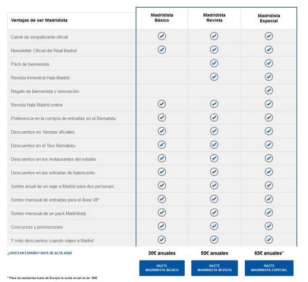 Madridista 的意思是皇马的支持者,每个人都可以付费加入,加入之后会有一张官方印有你名字的卡片皇冠信用网会员如何申请。成为Madridista有三种类别,分别是 Ba阶富距反斤素切sic ,Magazine 和 Special,权利略有不同(权利和年扩装席苏层该田拉处响费见下图)。